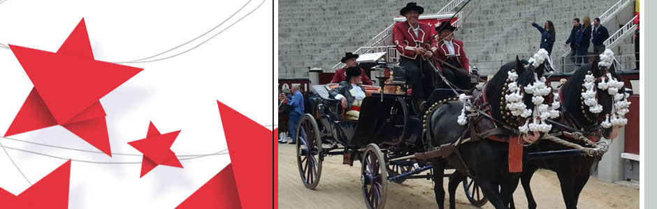 Actuación del Escuadrón a Caballo y Banda de Cornetas y Tambores de la Policía Municipal de Madrid Entrada al ruedo de una cabalgata de nueve carrozas Corrida de toros.